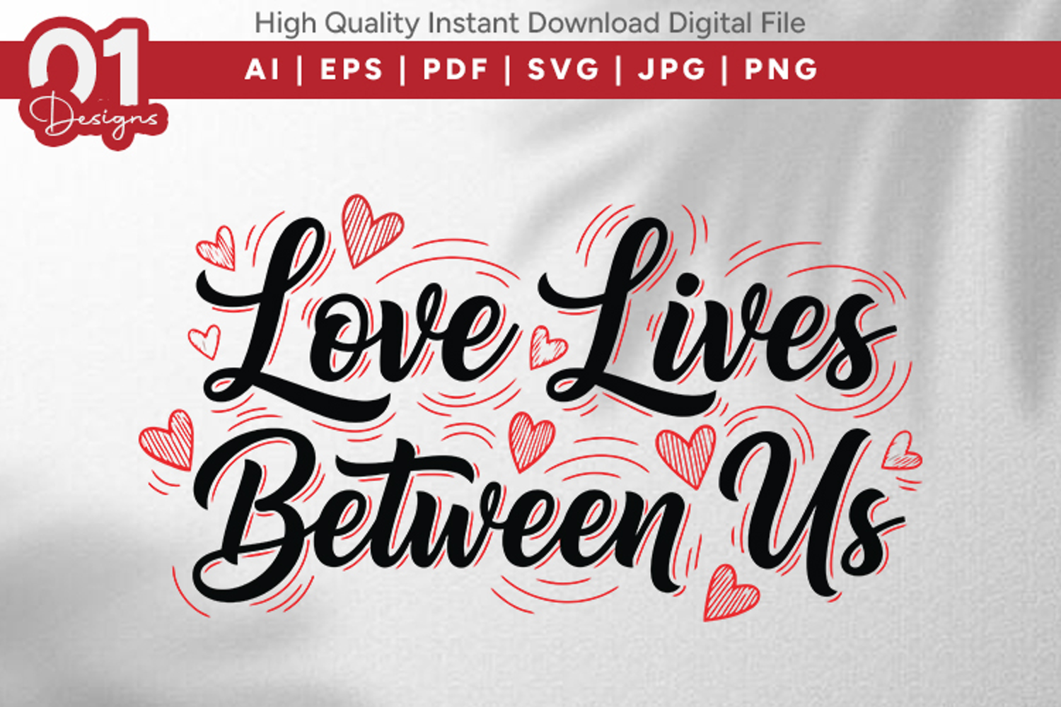 Love Lives Between Us Valentine Quotes SVG Design example image 1