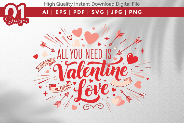 All You Need Is Valentine Love Valentine Quotes SVG Design example image 1