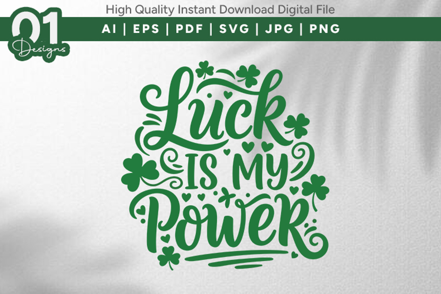 Show off your lucky confidence with this bold “Luck Is My Power” design featuring stylish lettering, shamrocks, and decorative swirls. Perfect for St. Patrick’s Day shirts, sweatshirts, mugs, stickers, tote bags, and DIY crafts. Includes high-quality SVG, PNG, and JPG files for smooth cutting and crisp printing.