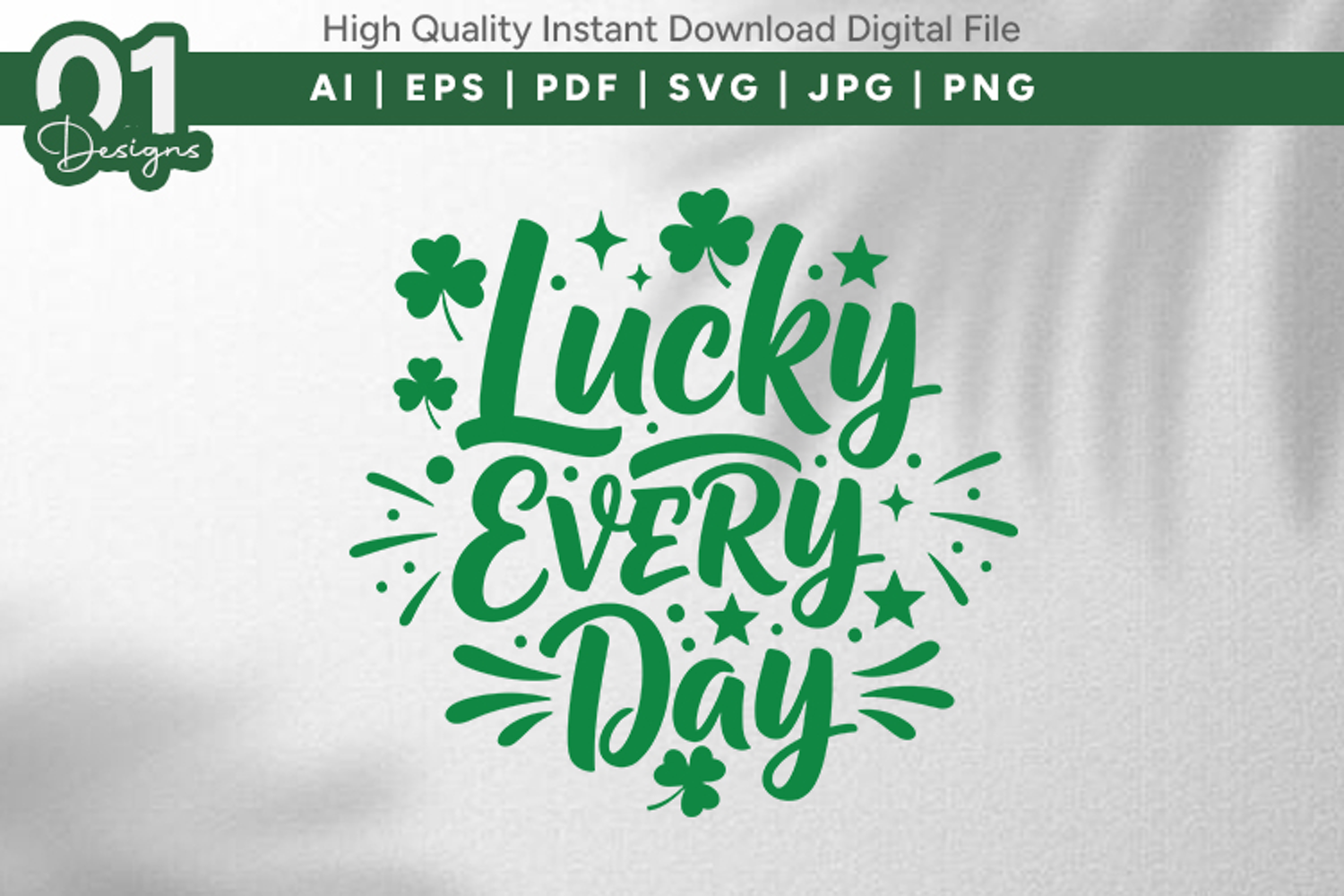 Spread positivity with this stylish Lucky Every Day shamrock design Featuring bold script lettering and playful clover accents, it’s perfect for trendy t-shirts, hoodies, mugs, tote bags, and festive accessories.