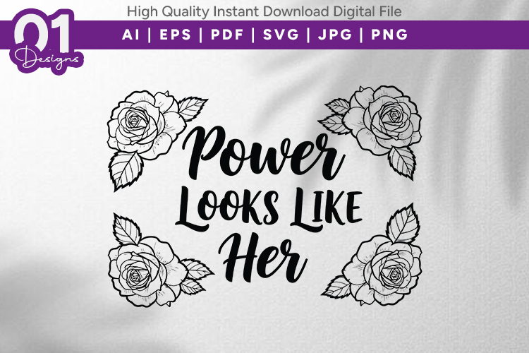 Power Looks Like Her is a beautiful empowerment quote design framed with elegant hand-drawn roses. Perfect for celebrating strength, confidence, and femininity. Ideal for t-shirts, hoodies, mugs, wall art, vinyl decals, greeting cards, and more. High-quality digital cut file compatible with Cricut, Silhouette, sublimation, printing, and DIY creative projects. Instant download for and use.