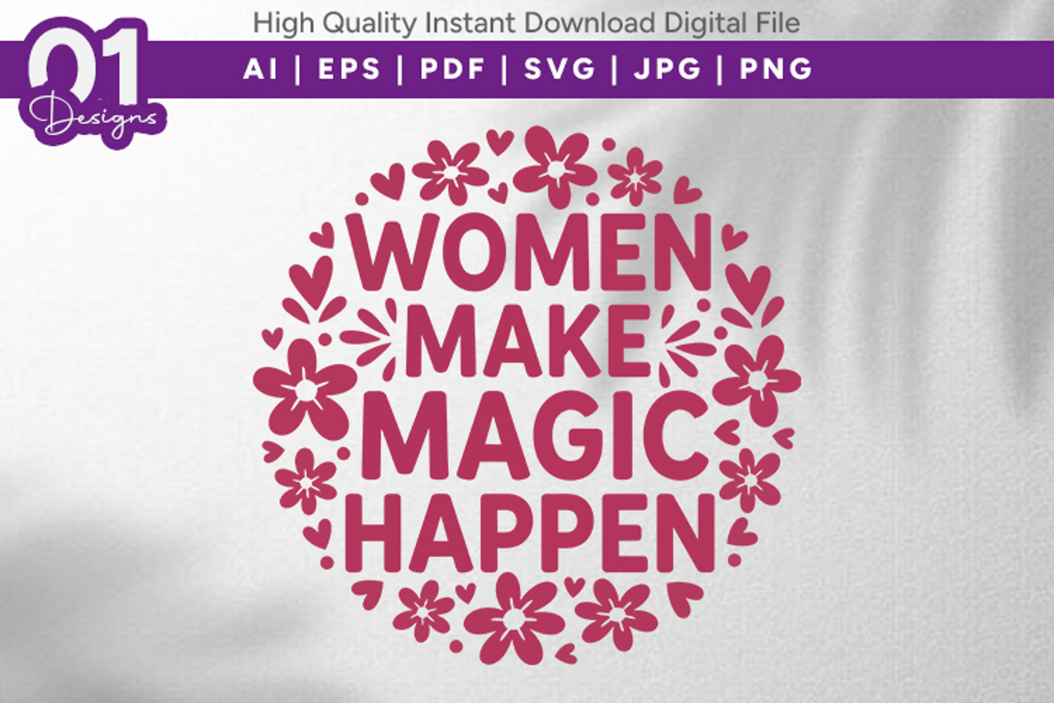 Celebrate the magic of women with this vibrant “Women Make Magic Happen” digital design featuring a beautiful floral frame and empowering typography. Perfect for Women’s Day crafts, empowerment shirts, mugs, stickers, wall art, and gifts for strong women.