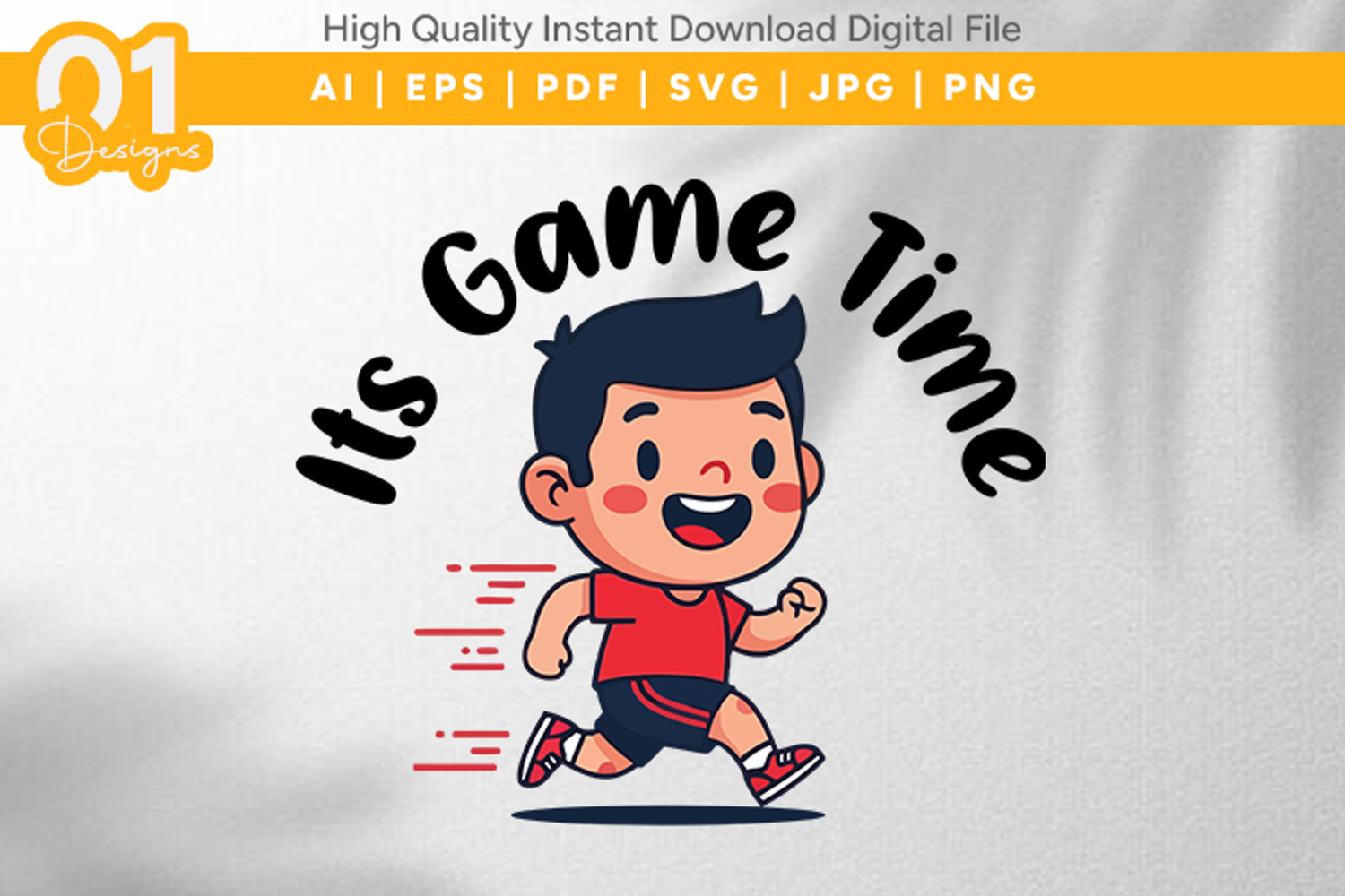 Get ready for action with this adorable “It’s Game Time” design, featuring a cute running character and bold text. Perfect for kids’ sports shirts, school events, gym gear, and athletic merch. Includes high-quality SVG, PNG, and JPG files for smooth cutting and crisp printing.