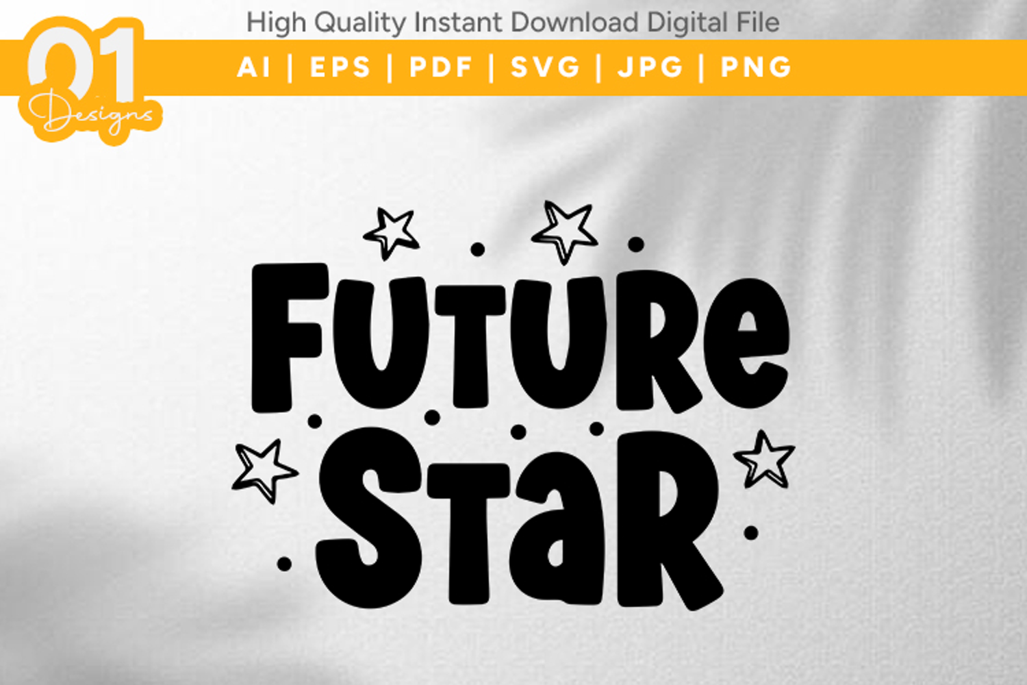 Future Star motivational typography design perfect for kids sports shirts, athlete apparel, classroom decor, and inspirational projects. Bold and playful lettering style makes it ideal for t-shirts, vinyl cutting, sublimation, heat transfer, wall art, and crafting. High-quality digital download suitable for and creative use. Ready to use for your next project.