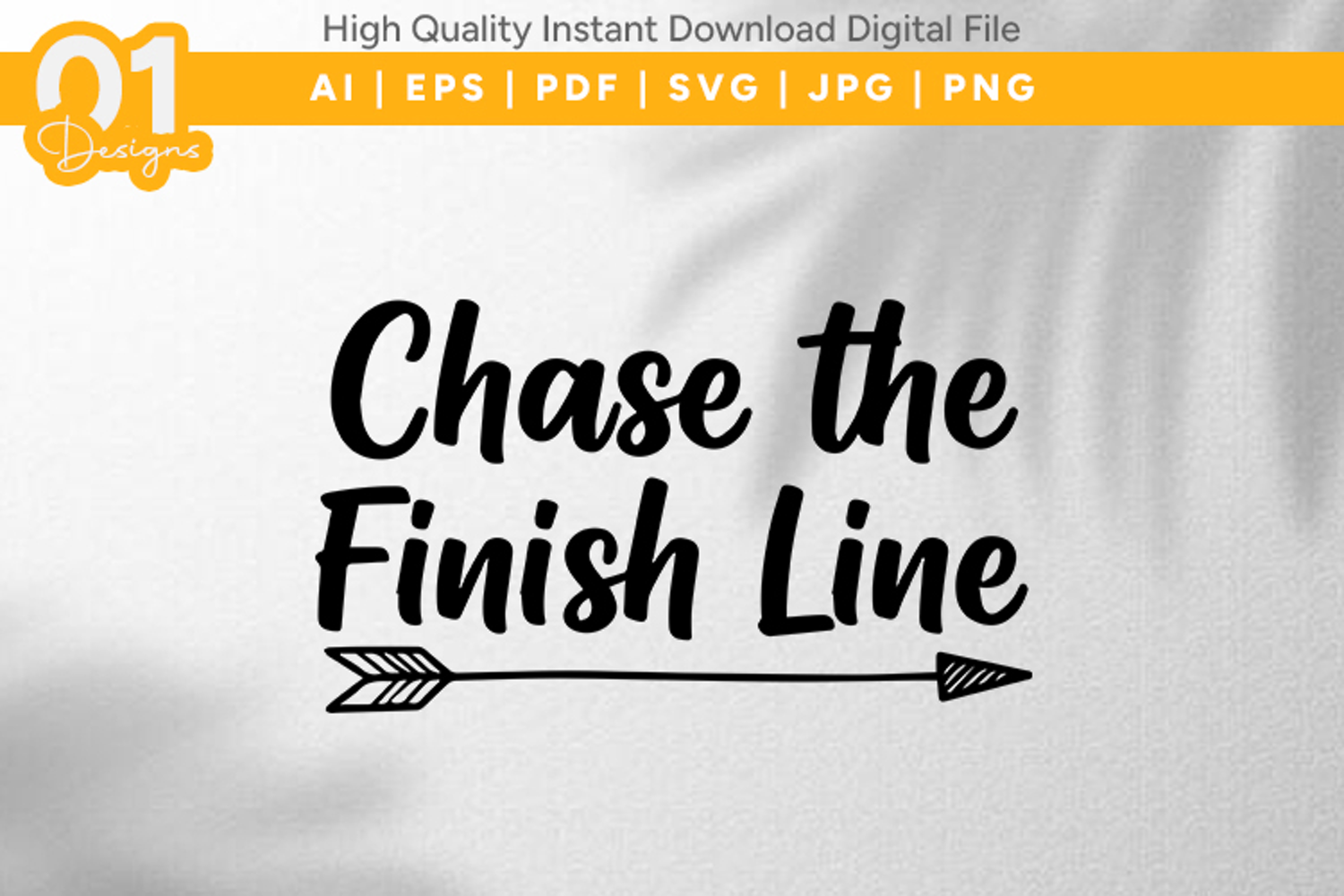 Chase The Finish Line motivational typography design perfect for runners, athletes, and goal-focused projects. Clean bold lettering with arrow detail makes it ideal for t-shirts, gym apparel, vinyl cutting, sublimation, heat transfer, wall art, and crafting. High-quality digital download suitable for and creative use. Ready for your next creative project.