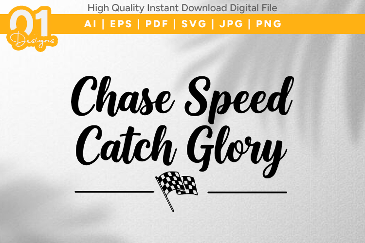 Chase Speed Catch Glory motivational typography design perfect for runners, racers, and active lifestyle projects. Stylish bold lettering with racing flag detail makes it ideal for t-shirts, gym apparel, vinyl cutting, sublimation, heat transfer, wall art, and crafting. High-quality digital download suitable for and creative use. Ready for your next creative project.