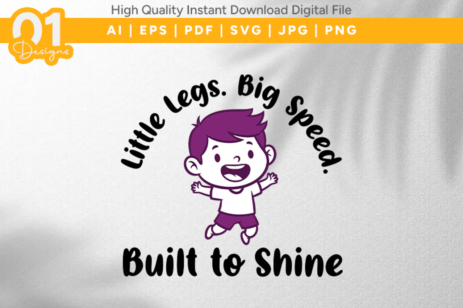 abcA cute and motivational kids design featuring the uplifting “Little Legs Big Speed Built to Shine” theme with a cheerful cartoon character. Perfect for kids apparel, t-shirts, mugs, stickers, nursery decor, and DIY craft projects. This high-quality digital file is ideal for sublimation and cutting machines. Clean and scalable artwork ensures excellent results for both print and digital use.