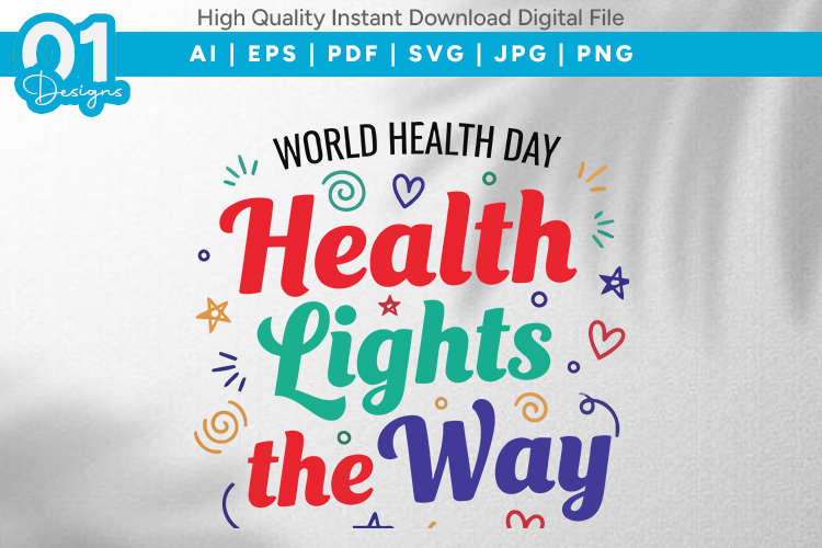 Health Lights The Way is a vibrant and uplifting typography design celebrating wellness, positivity, and healthy living. This inspirational quote artwork is perfect for t-shirts, mugs, tote bags, wall art, awareness events, gym decor, and DIY craft projects.