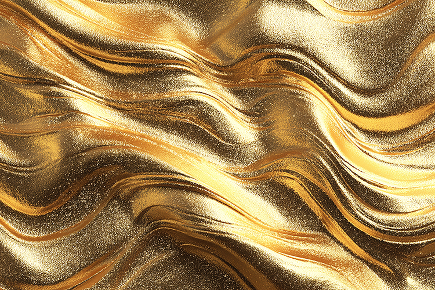 Gold abstract background featuring wavy metallic lines that create a sense of movement and luxury. The shiny, bright, and vibrant colors evoke a feeling of opulence and sophistication, making it perfect for high-end designs and creative projects.