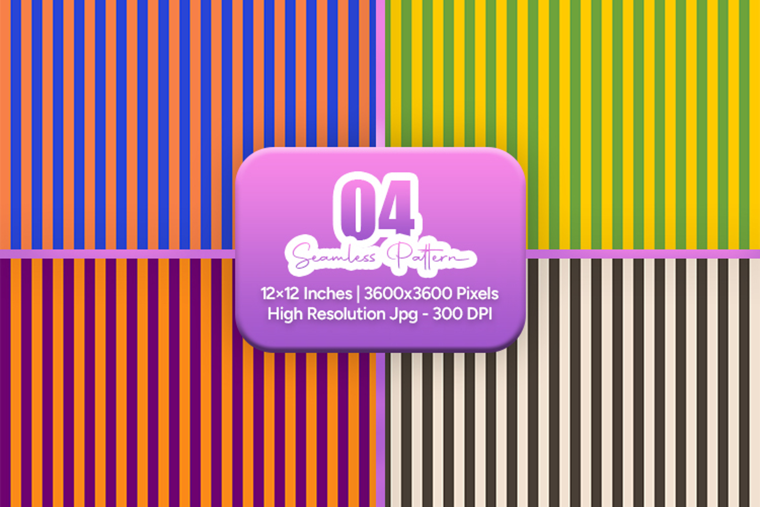 A vibrant collection of bright vertical stripe seamless patterns in bold and playful color combinations. Perfect for scrapbooking, planner layouts, card making, fabric printing, sublimation, wrapping paper, and other creative projects. Each file is 12x12 inches, high-resolution JPG at 300 DPI, ready for both print and digital use.