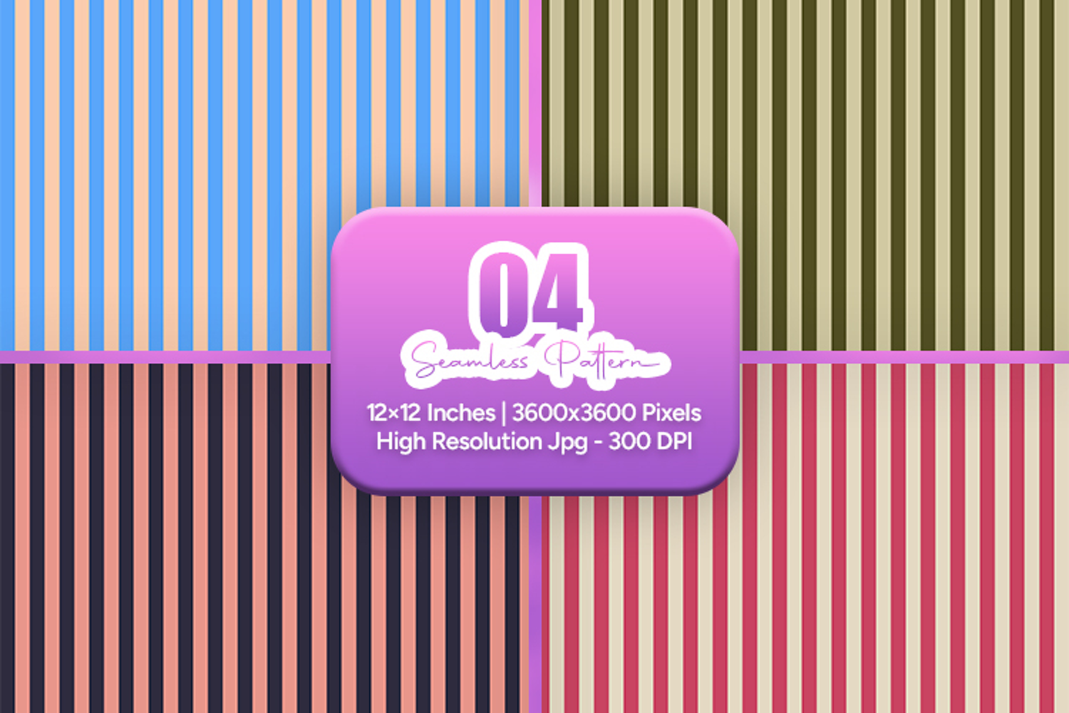 A stylish collection of muted and earthy vertical stripe seamless patterns in soft, balanced color combinations. Perfect for scrapbooking, card making, planners, fabric printing, sublimation, wrapping paper, wallpaper, and other creative projects. Each file is 12x12 inches in high-resolution JPG format at 300 DPI, ready for both print and digital use.