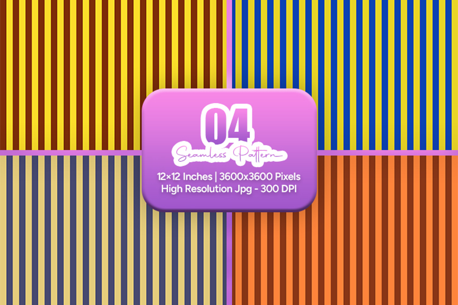 A bold vintage-inspired collection of vertical stripe seamless patterns featuring rich and vibrant color combinations. Perfect for scrapbooking, card making, planner layouts, fabric printing, sublimation, wrapping paper, wallpaper, and other creative projects. Each design is 12x12 inches in high-resolution JPG format at 300 DPI, ready for both print and digital use.
