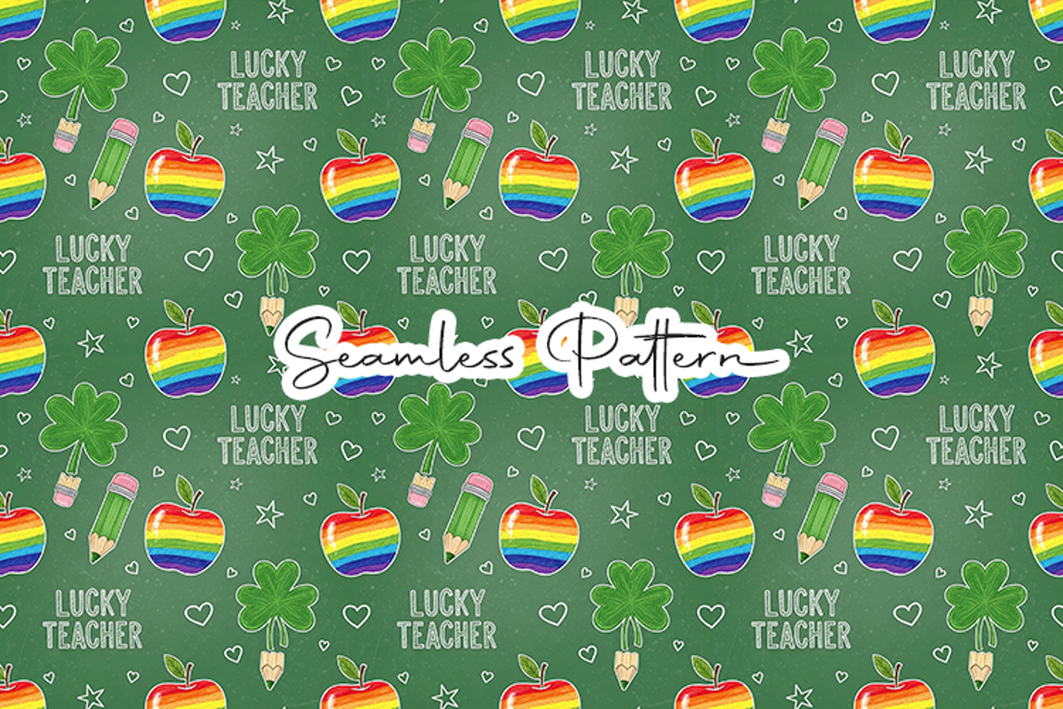 Lucky Teacher Rainbow Apple Pattern - Leprechaun & Clovers example image 1