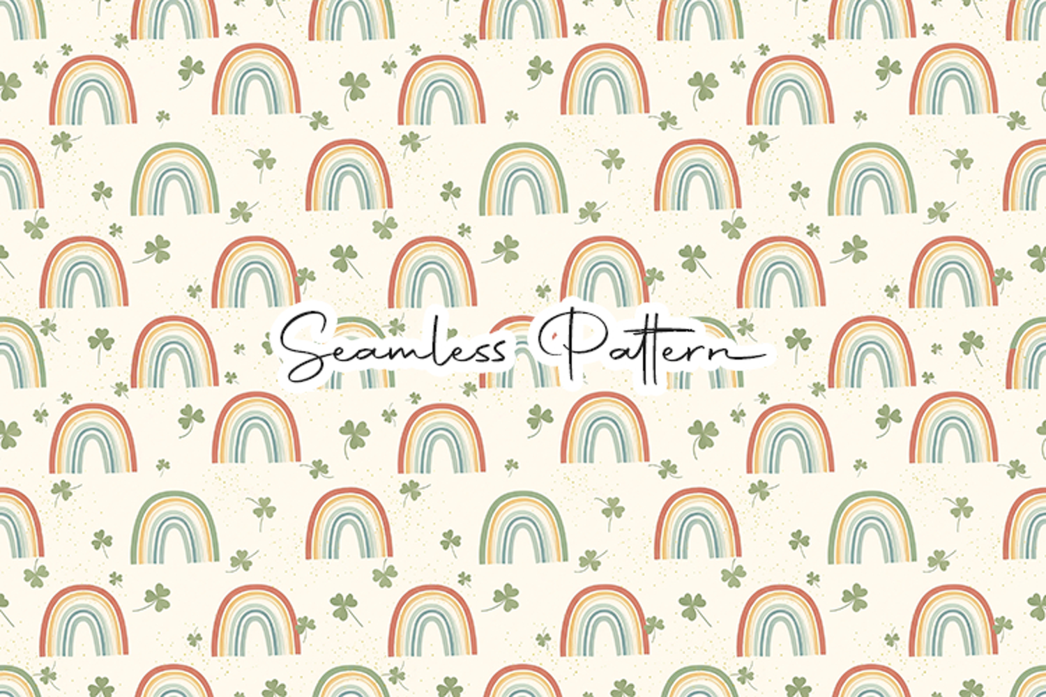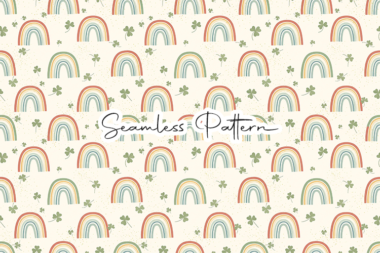 Boho Rainbow Clover Seamless Art - Leprechaun & Clovers