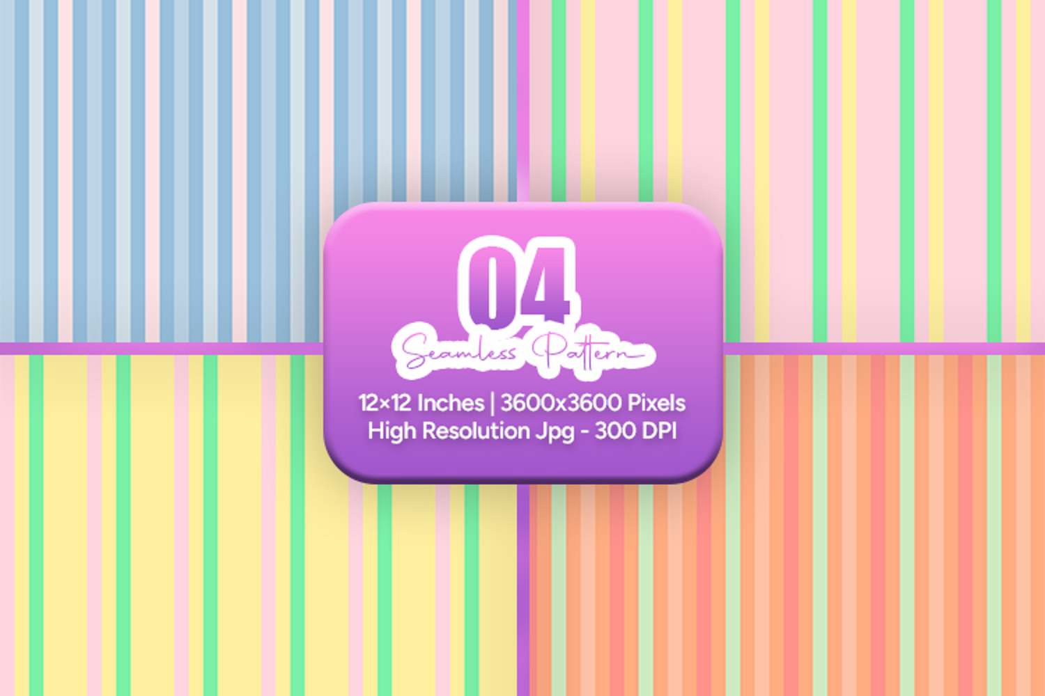 Seasonal pastel vertical stripe seamless digital paper bundle featuring soft blue, mint green, blush pink, creamy yellow, and coral tones. Perfect for fabric printing, scrapbooking, wrapping paper, sublimation, nursery themes, party décor, and DIY craft projects.