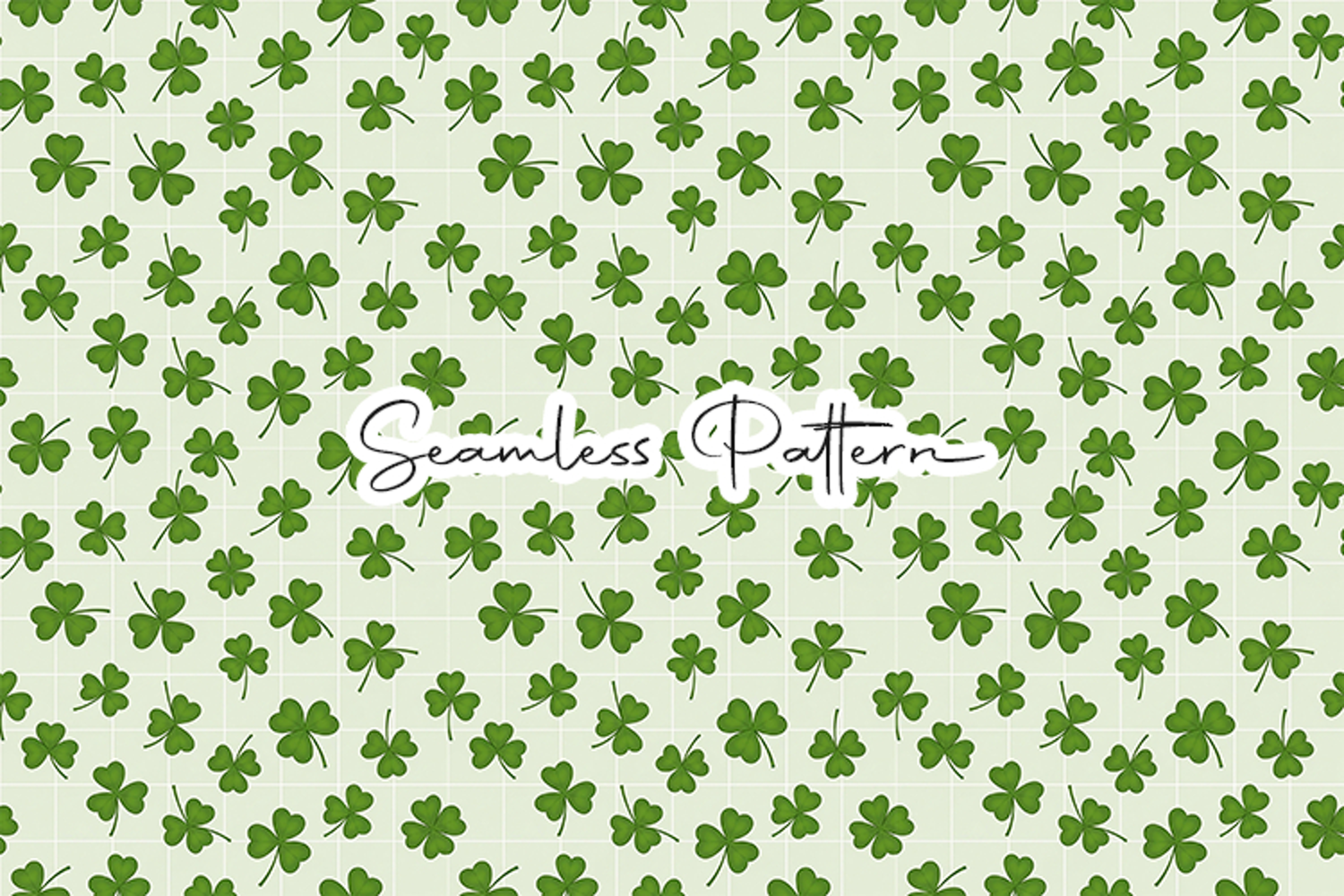 A clean and modern 12x12 inch seamless pattern featuring small green clovers on a light lattice background. 300 DPI JPG file. Ideal for modern holiday branding, apparel, and subtle backgrounds.