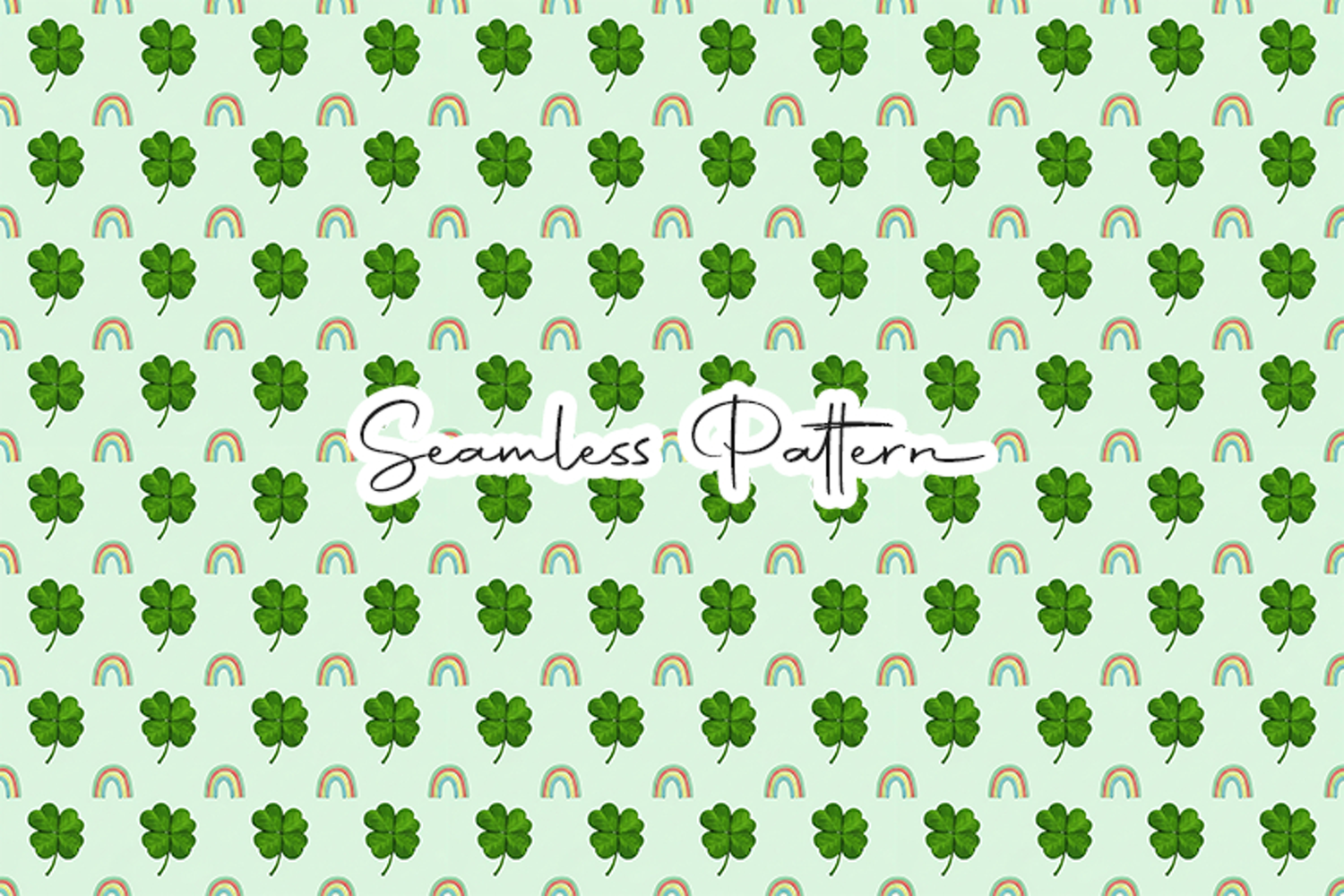 A beautiful 12x12 inch seamless pattern showcasing realistic shamrocks paired with soft rainbows in clean rows. 300 DPI JPG file. Perfect for modern holiday branding, apparel, and nursery decor.