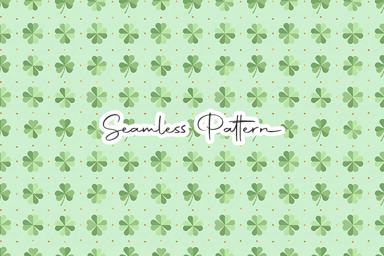 High-quality 12x12 inch seamless pattern featuring emerald clovers accented with shimmering gold dots on a soft green field. 300 DPI JPG file. Ideal for elegant holiday textiles, high-end scrapbooking, and digital backgrounds.