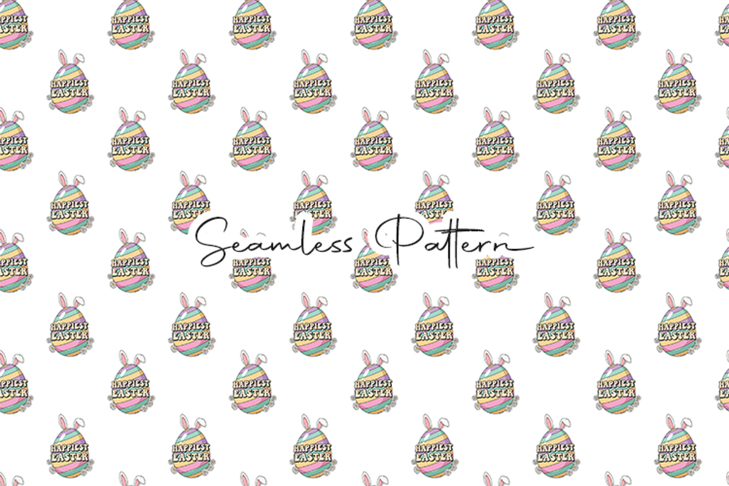 A festive seamless pattern featuring colorful eggs with the cheerful "Happiest Easter" text. Perfect for holiday event branding, party invitations, and spring-themed digital scrapbooking.