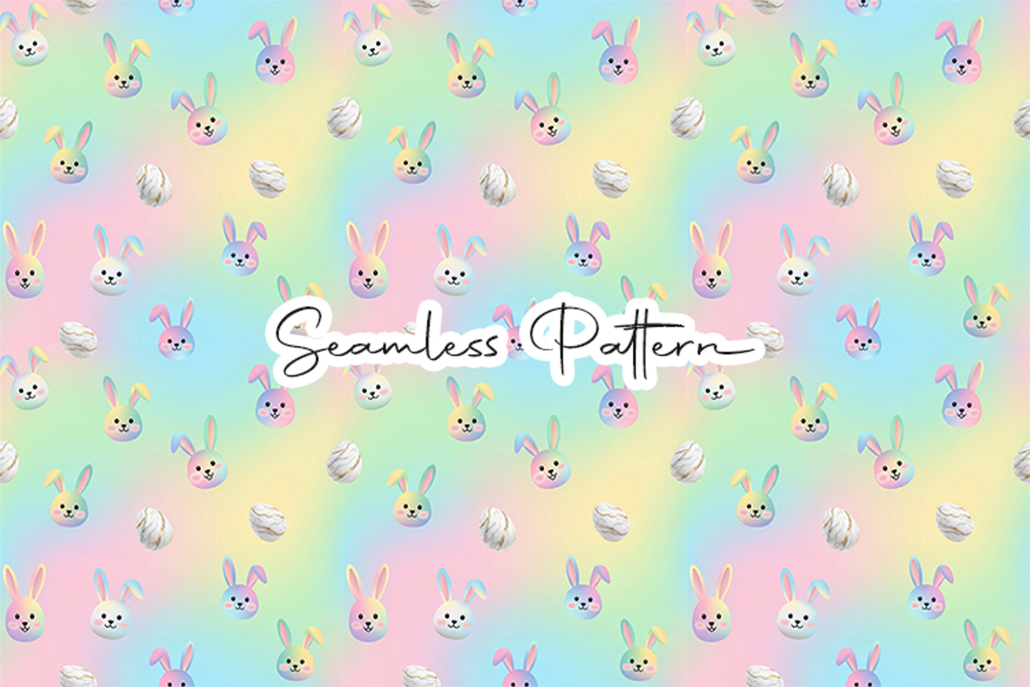 Spring Easter Colorful Gradient Digital Paper Bunny Seamless Pattern Egg Marble Iridescent