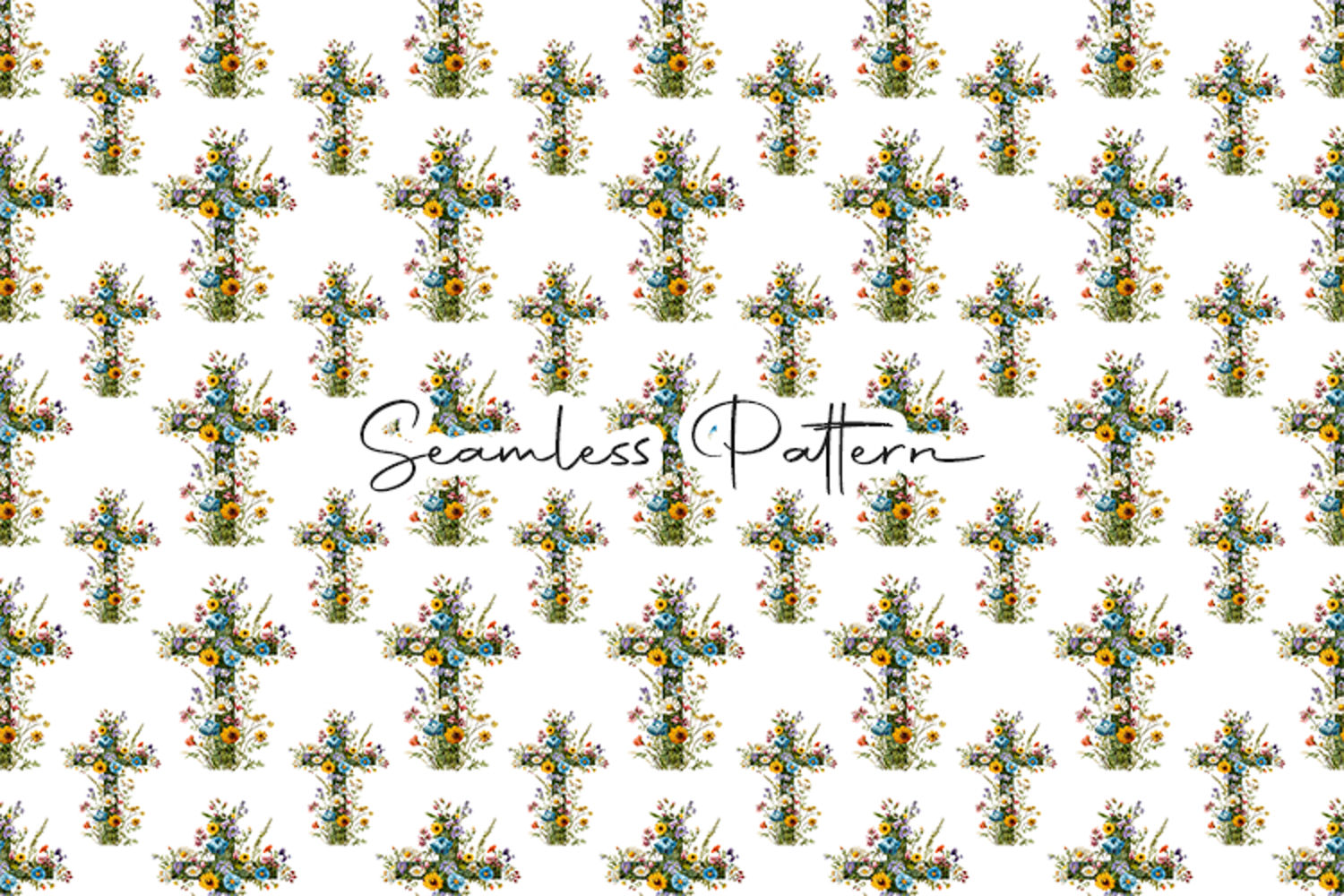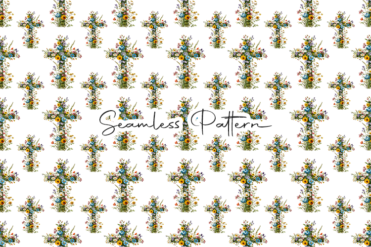 Easter Cross Design Spiritual Pattern Cross Seamless Pattern Floral Cross Pattern Religious Pattern Christian Cross Pattern Floral Christian Pattern Faith Cross Pattern Church Pattern Design Bible Theme Pattern