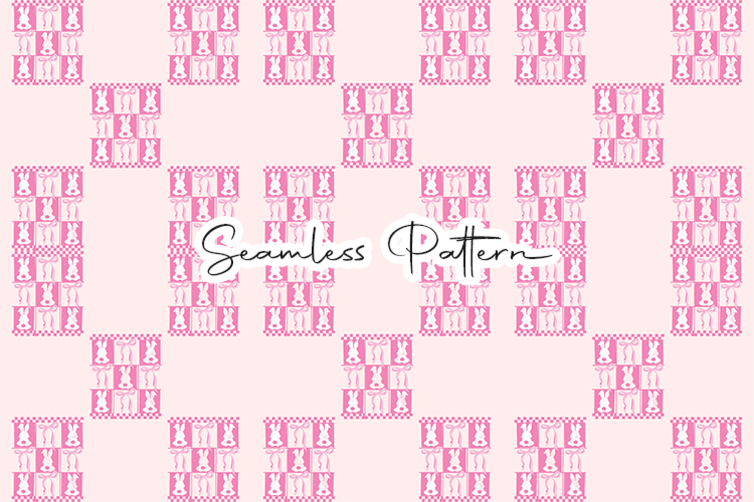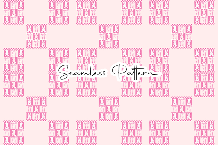 Cute pink Easter seamless pattern featuring repeating bunny silhouettes arranged in decorative square frames. This 12x12 inch seamless pattern (JPG, 300 DPI) is perfect for digital paper, fabric printing, wrapping paper, scrapbooking, sublimation, and Easter-themed craft projects.