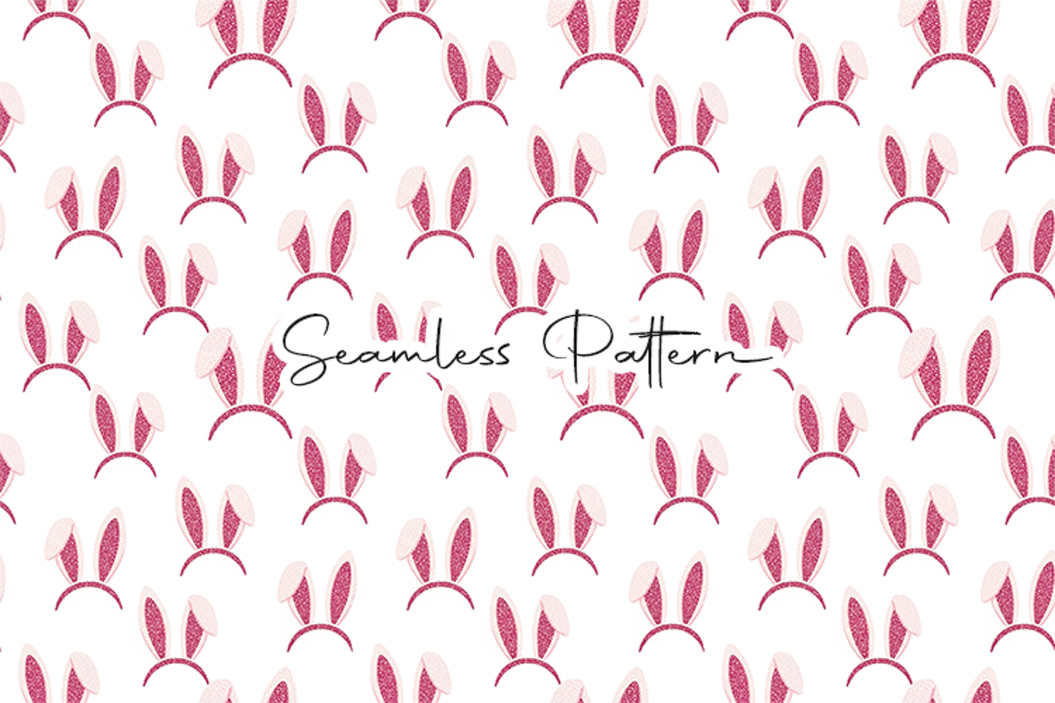 Pink Glitter Bunny Ears Seamless Pattern example image 1