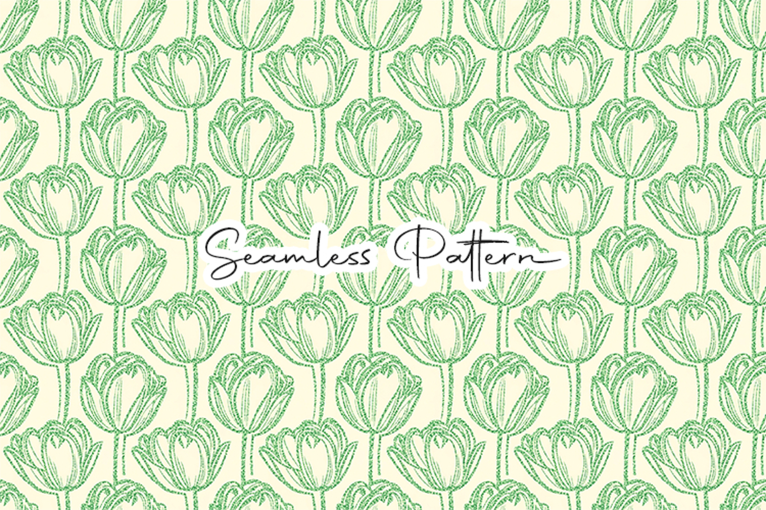 Elegant green tulip floral seamless pattern featuring delicate line-style tulip flowers arranged in a clean repeating design. This high-quality 12x12 inch JPG file at 300 DPI is perfect for fabric printing, scrapbooking, wrapping paper, wallpaper, sublimation, digital paper, and other floral or spring-themed creative projects.