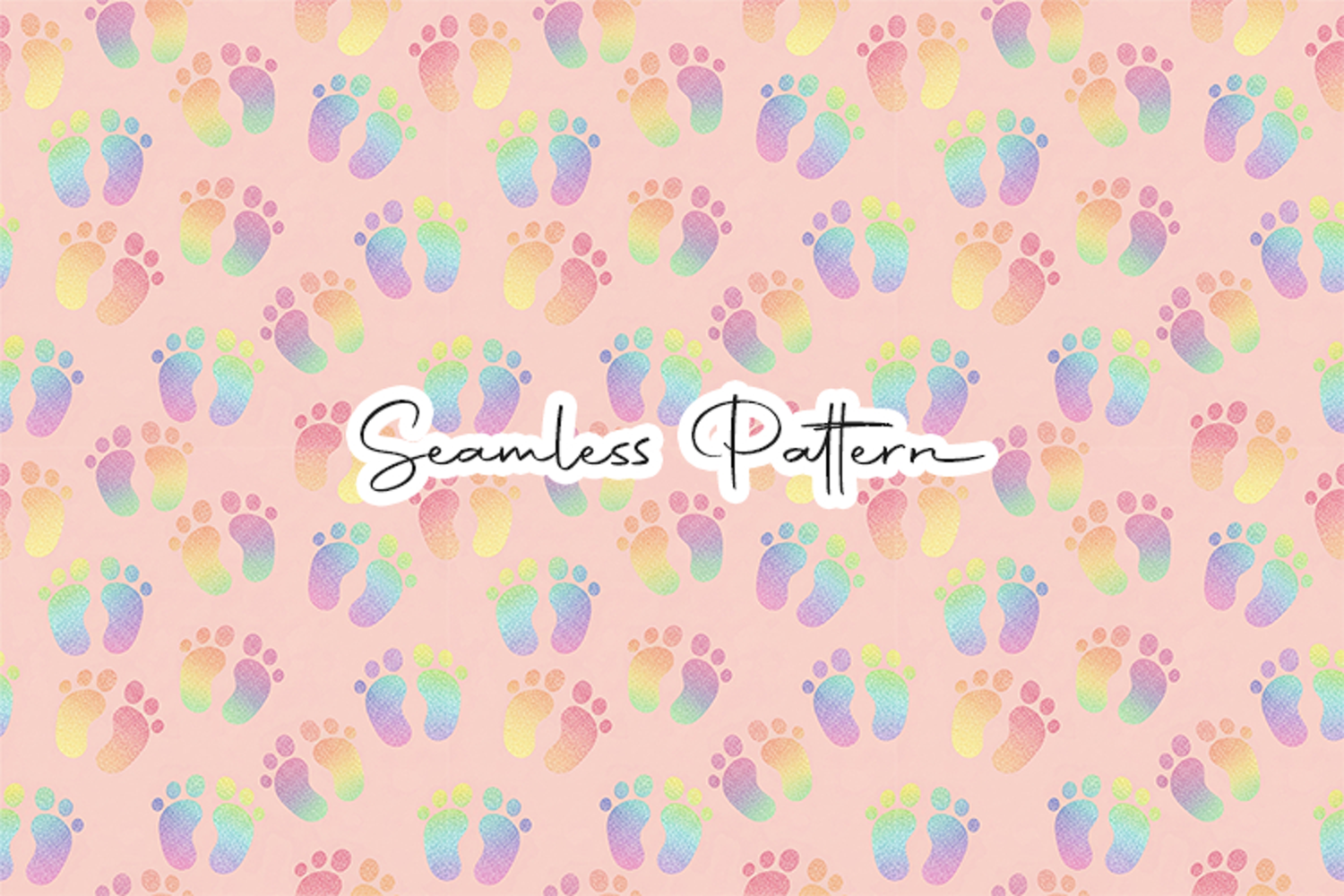 Adorable rainbow baby footprint seamless pattern featuring colorful pastel footprints arranged in a playful repeating design on a soft background. Perfect for baby shower crafts, nursery decor, fabric printing, wrapping paper, scrapbooking, sublimation, and digital projects.