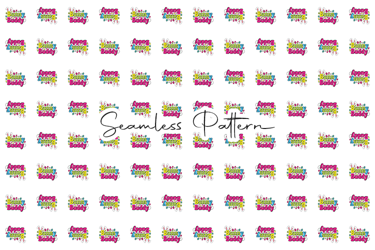 Fun and colorful “Hoppy Bunny Buddy” Easter seamless pattern featuring playful typography with cheerful colors in a repeating layout. Perfect for Easter crafts, fabric printing, wrapping paper, scrapbooking, sublimation, and digital paper projects.