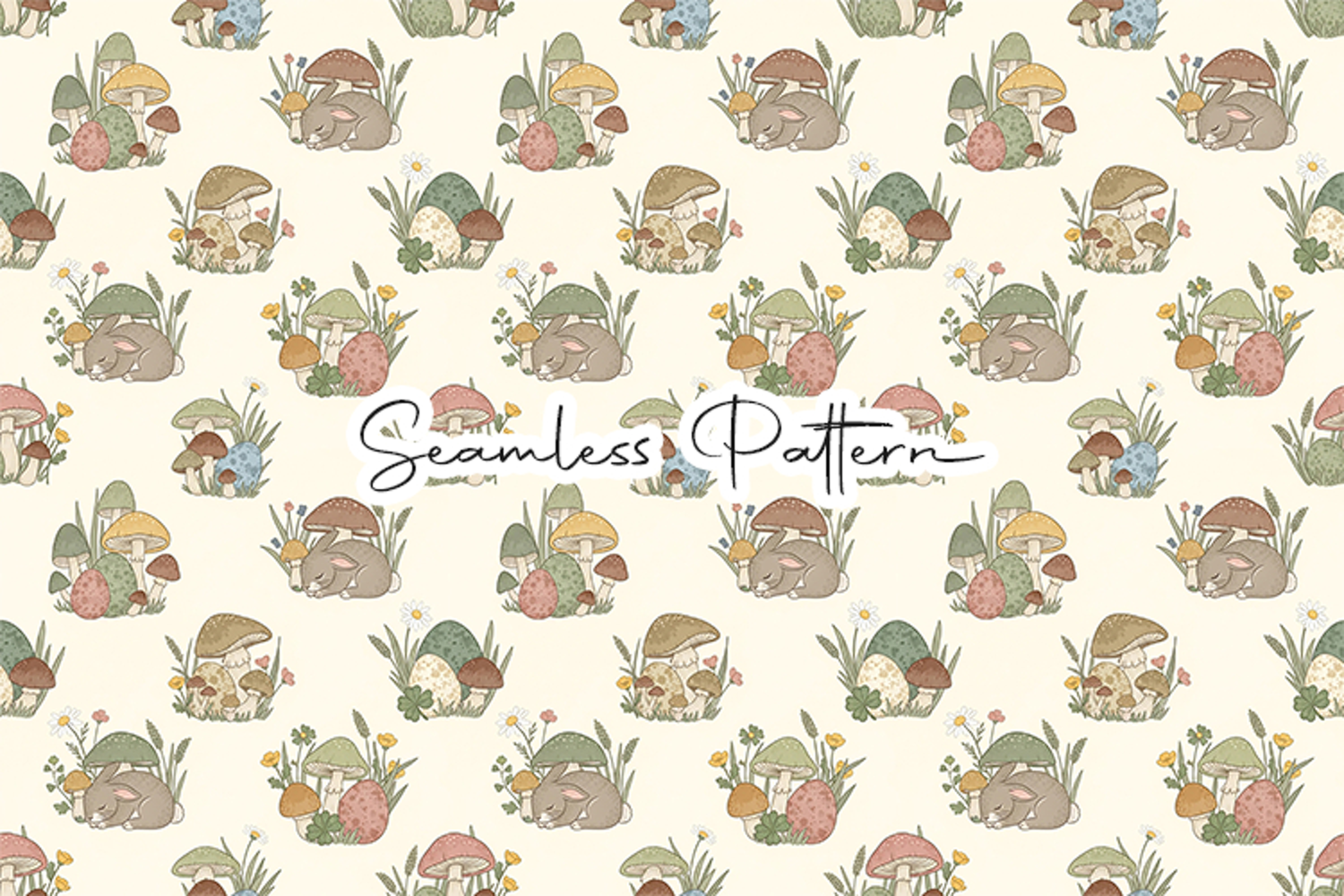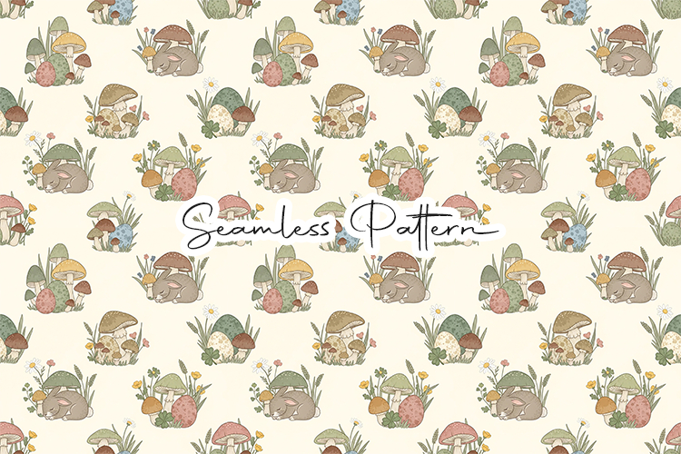 Easter Bunny Pattern Forest Animal Pattern Easter Egg Pattern Mushroom Seamless Pattern Woodland Seamless Pattern Bunny Mushroom Pattern Woodland Bunny Pattern Spring Woodland Pattern Forest Bunny Design Woodland Background Pattern