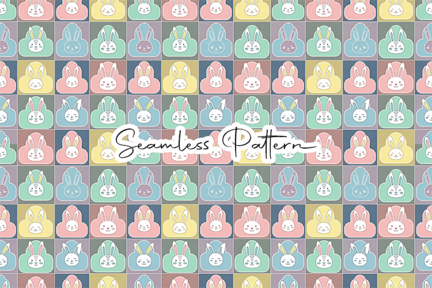 Pastel Bunny Grid Seamless Pattern example image 1