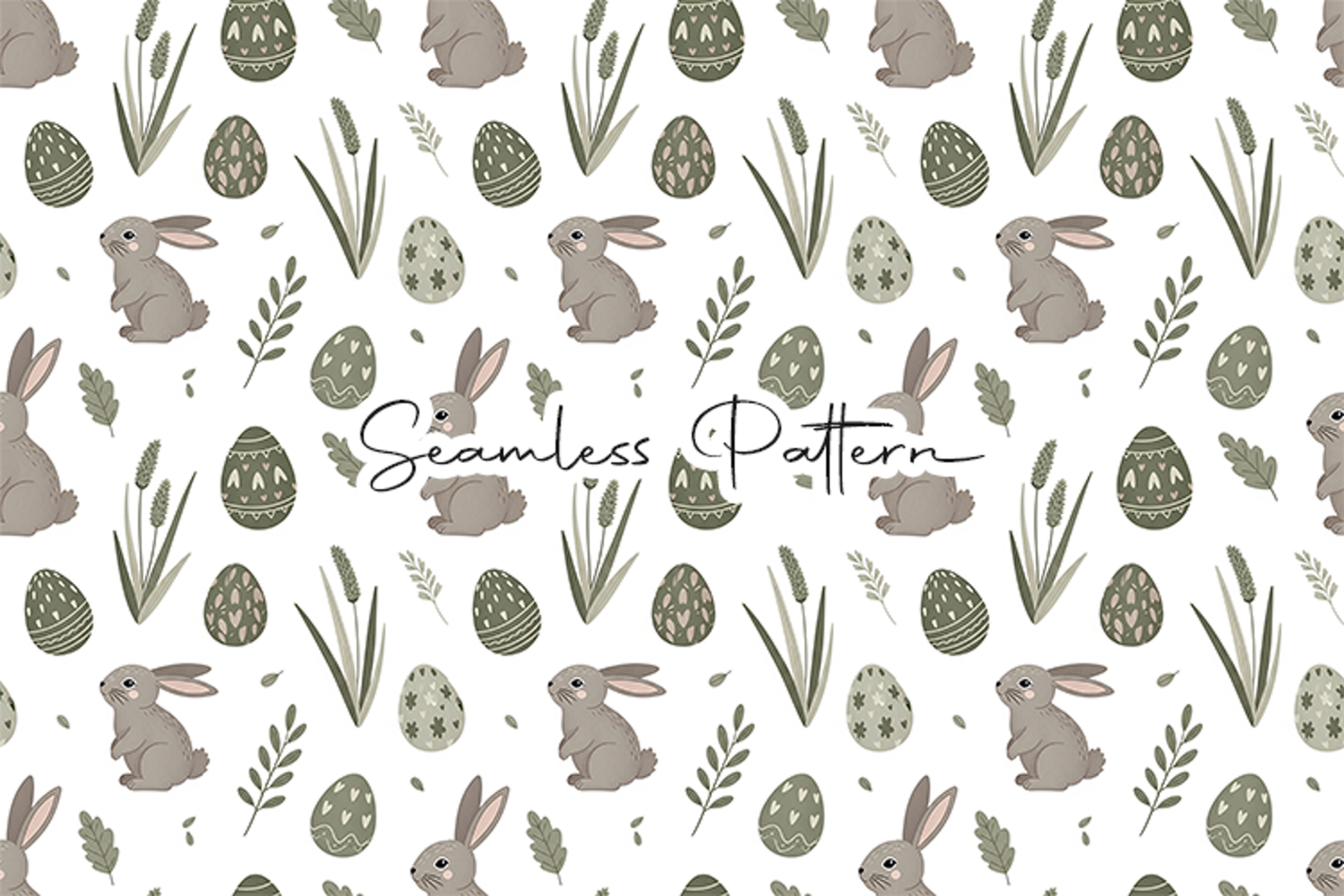 Vintage Bunny Eggs Seamless Pattern example image 1