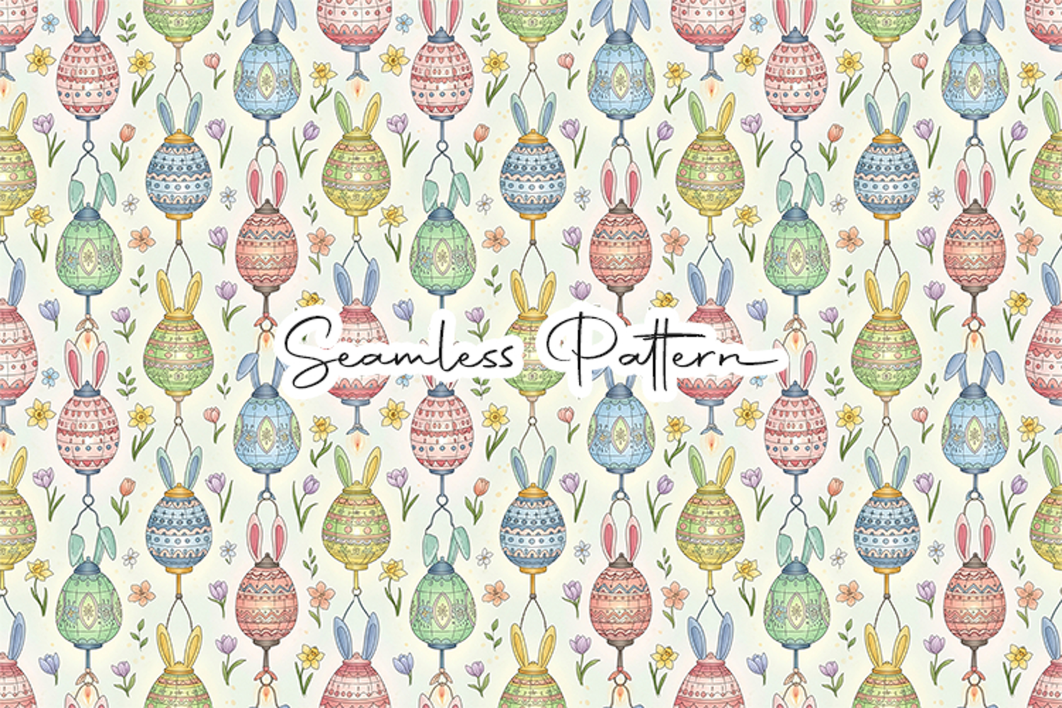 Spring Flowers Easter Pattern Bunny Pattern Easter Seamless Pattern Decorative Eggs Spring Pattern Floral Easter Pastel Easter Easter Egg Pattern Bunny Ear Eggs