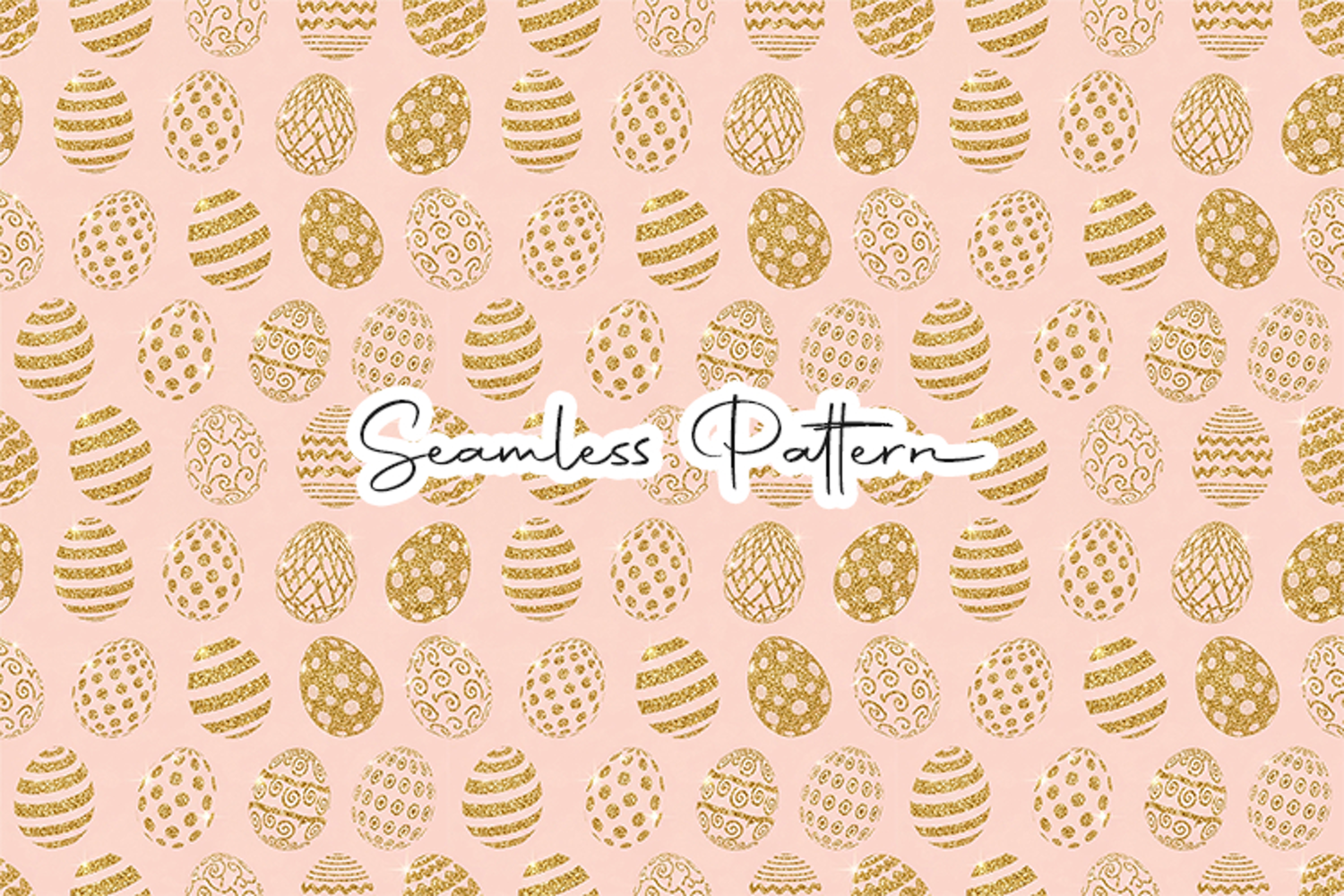 Gold Glitter Easter Eggs Seamless Pattern example image 1
