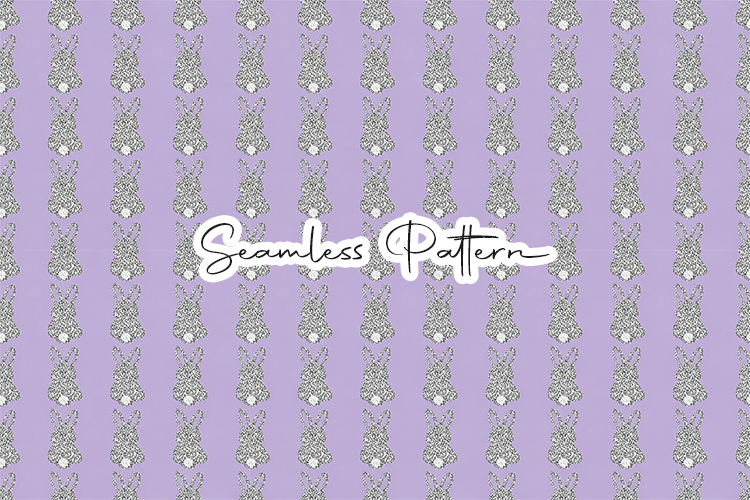 Pastel Easter bunny seamless pattern featuring small repeating rabbit silhouettes arranged in a neat decorative layout on a soft purple background. This high-quality 12x12 inches seamless JPG file at 300 DPI is perfect for fabric printing, digital paper, scrapbooking, wrapping paper, sublimation, textile design, and Easter or spring themed creative projects.