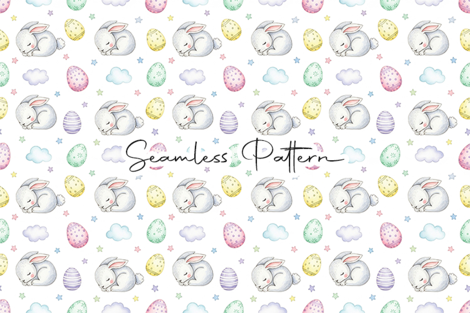 Sleeping Bunny Easter Seamless Pattern example image 1