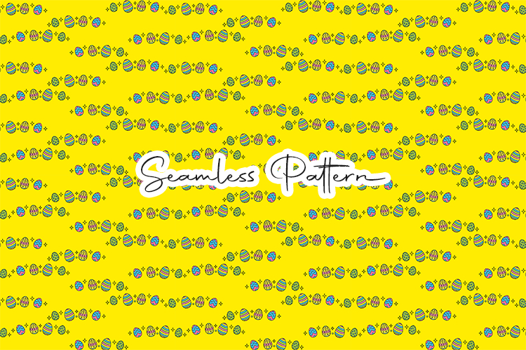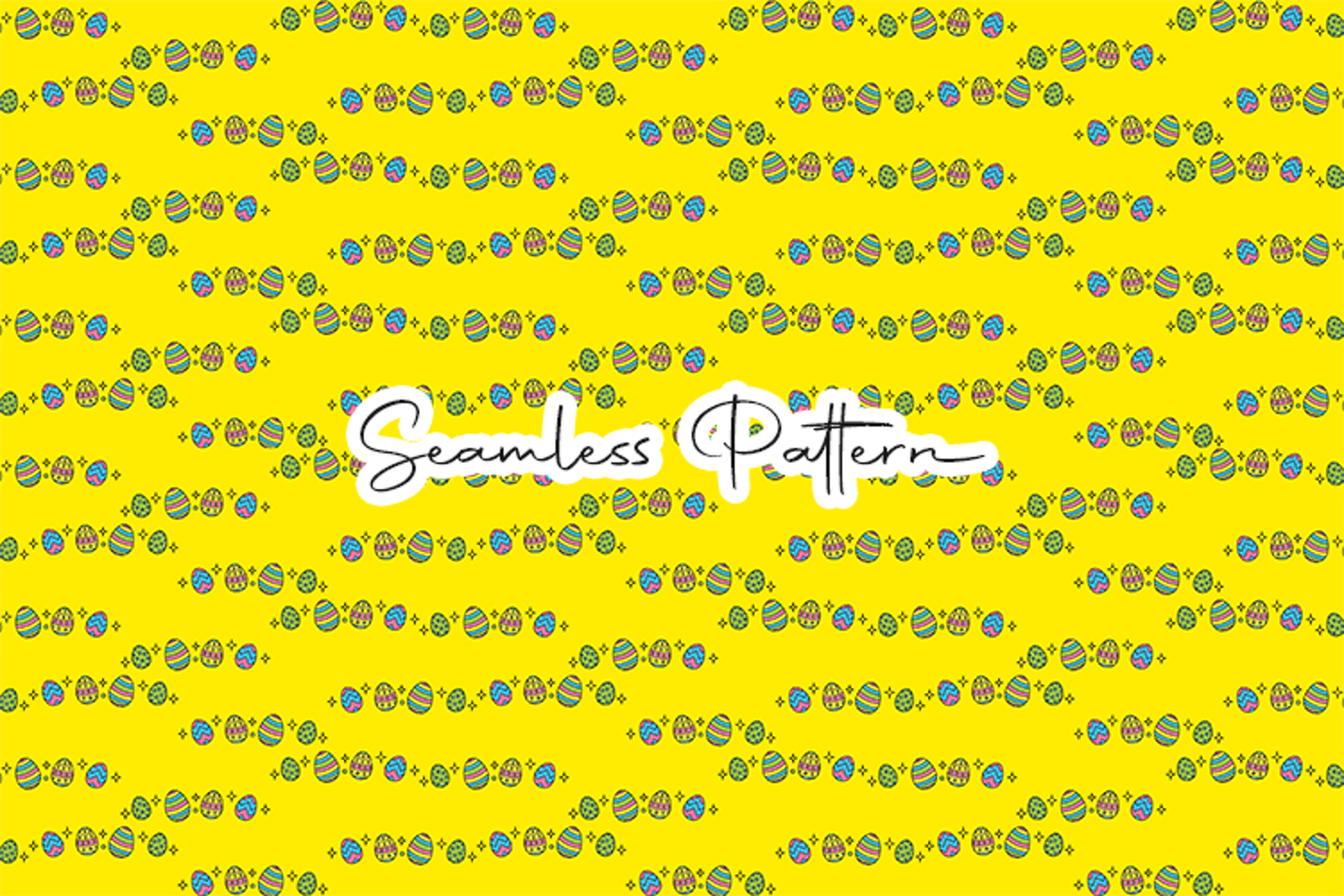 Bright Easter eggs seamless pattern featuring colorful decorated eggs arranged in neat repeating rows on a vibrant yellow background. Perfect for Easter crafts, wrapping paper, fabric printing, scrapbooking, digital paper, and sublimation projects.