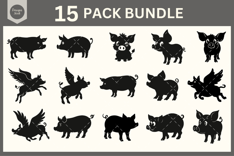 Pig SVG Bundle, Kawaii Piglet Silhouette, Farm Animals