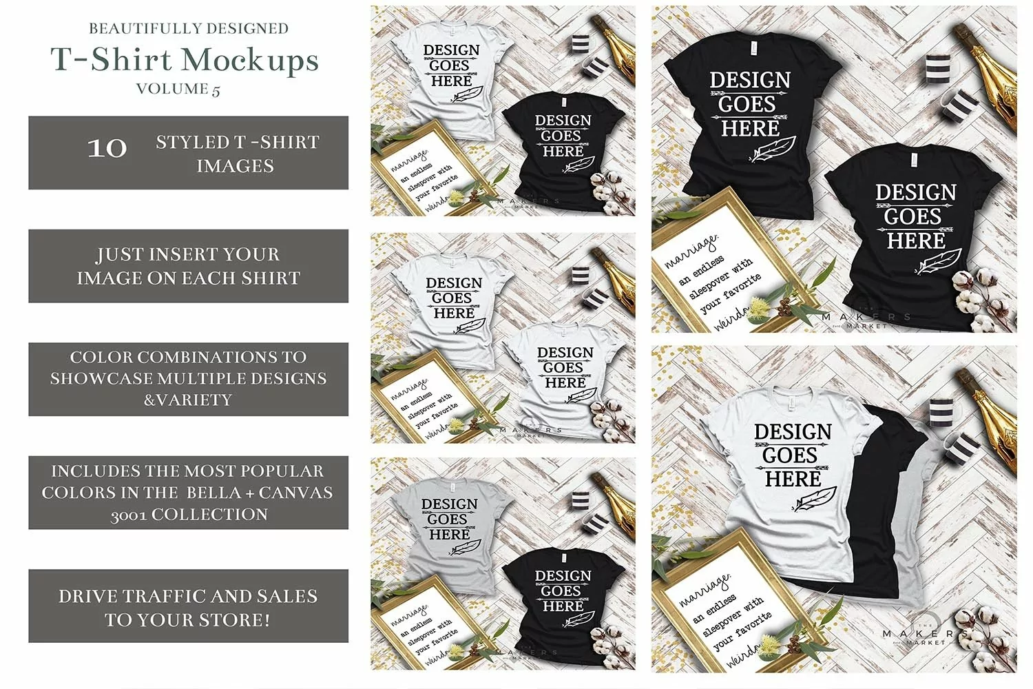 Makers market is a mock-up studio specializing in creating detailed shots perfect for bloggers, shop owners, website developers, and artists to showcase their designs. We make photo realistic images that will drive traffic and sales to your store.  We take the hassle out of preparing and demonstrating your products with our pre-made scenes ready for anyone to drag and drop their artwork on to.