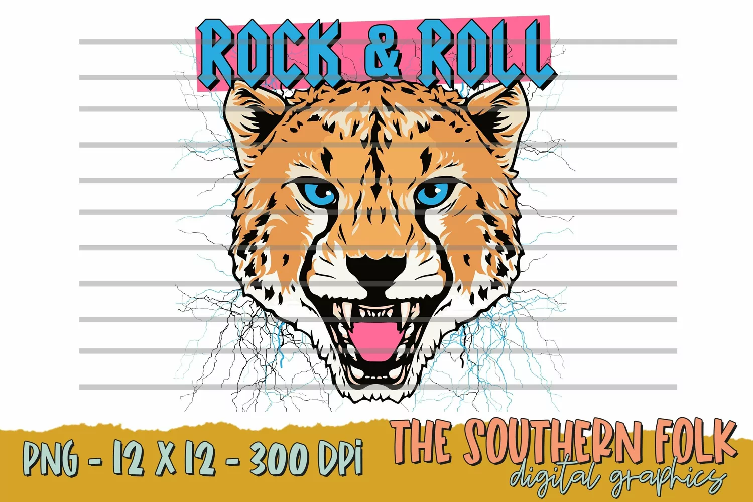 Rock & Roll Cheetah PNG File, Sublimation Design