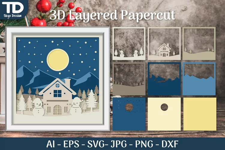 3D Shadow box Chistmas Scene Layered Papercut example image 1