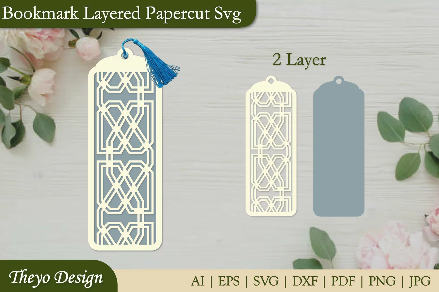 Bookmark SVG, Bookmark laser file, Bookmark Layered Papercut example image 1