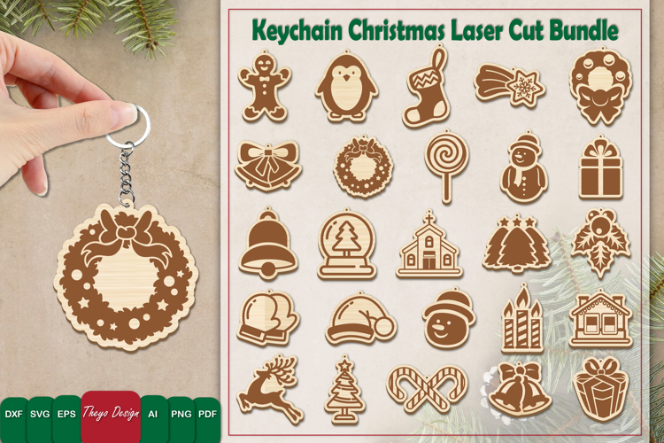 25 Design Christmas Keychain Laser Cut | Christmas Keychain example image 1