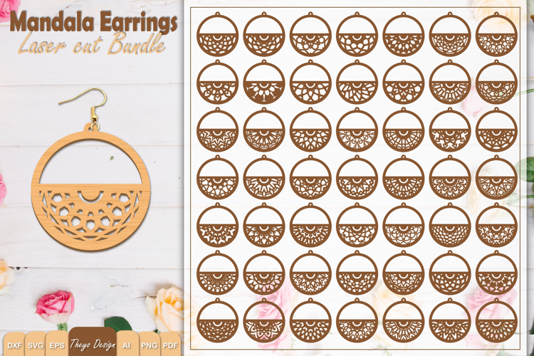 50 Design Earrings Laser Cut | Mandala Earrings Design Bundl