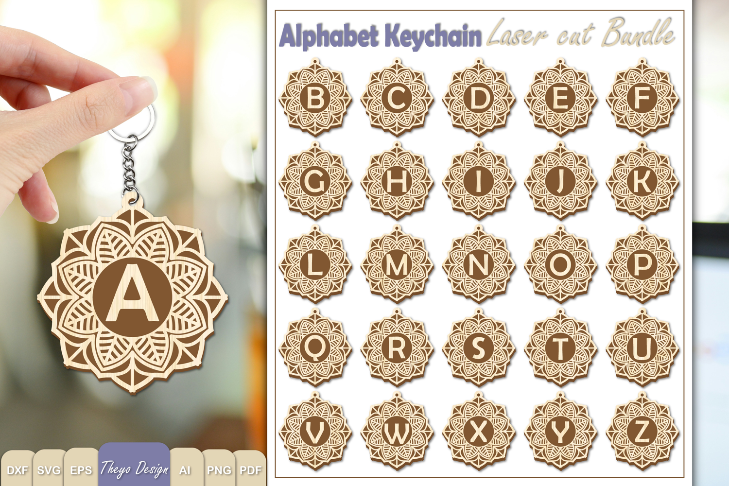 Alphabet Keychain Lasercut|Monogram Alphabet Keychain Bundle example image 1