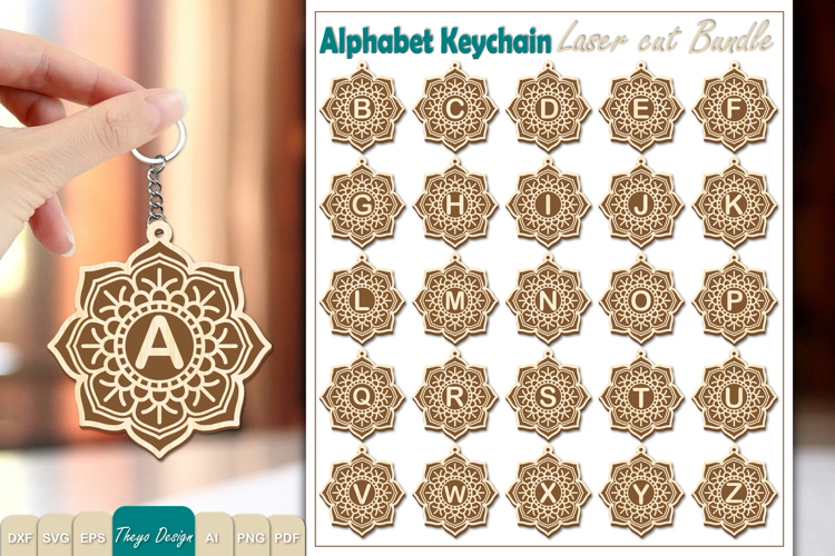 Alphabet Keychain Lasercut|Monogram Alphabet Keychain Bundle example image 1