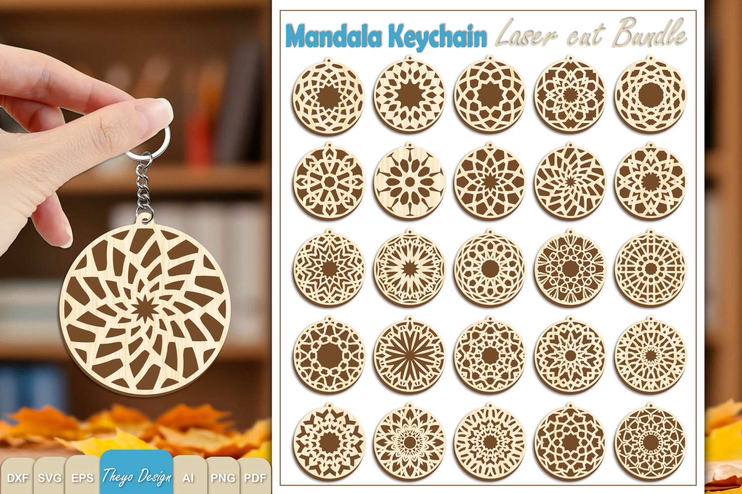 Mandala Keychain Laser Cut | Wooden Mandala Kaychain Bundle example image 1