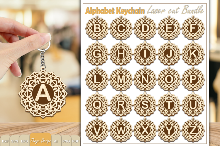 Alphabet Keychain Lasercut|Monogram Alphabet Keychain Bundle example image 1