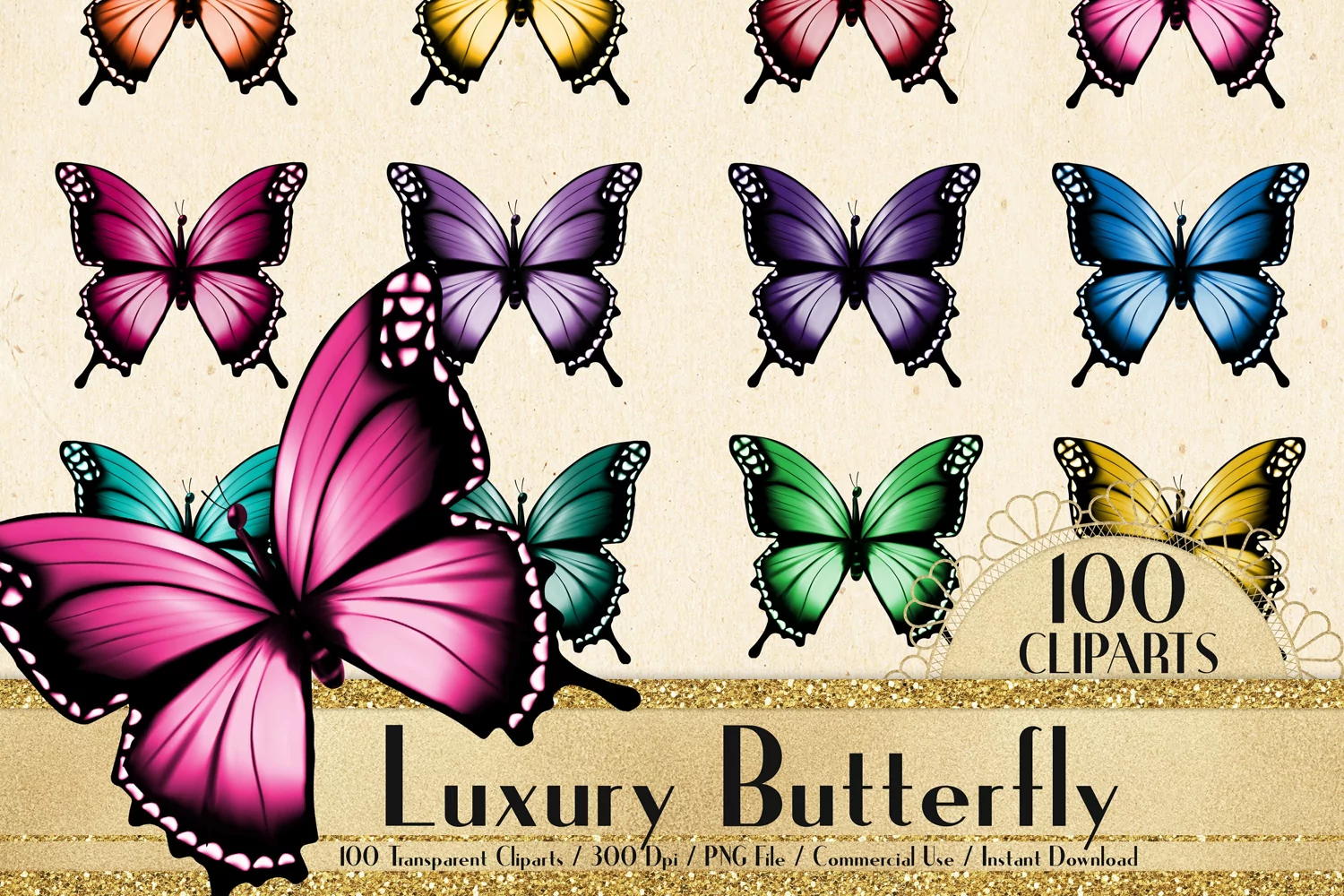 100 Vivid Color Luxury Butterfly Clip Arts, Romantic Clipart example image 1